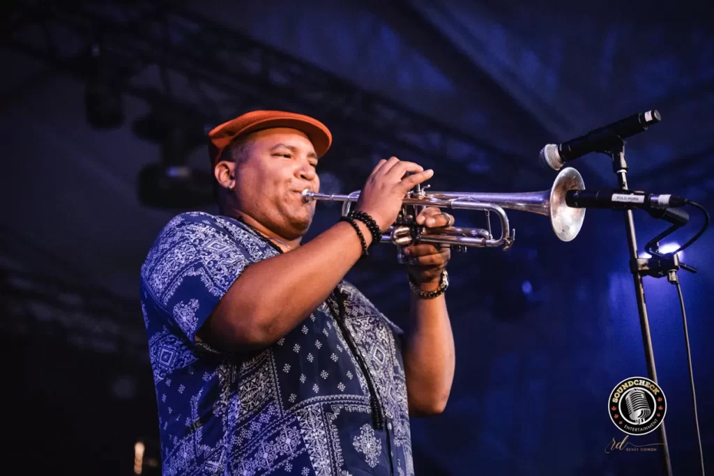 One notable performance that stood out to me in my travels through the venue on opening night was The Melbourne Ska Orchestra. Their early set brought a new level of energy to the River Stage, especially for opening night on a sweltering Thursday evening. This 26 member group from Australia has toured around the world in front of sold out shows and after seeing them last night it’s clear to me as to what their draw is.