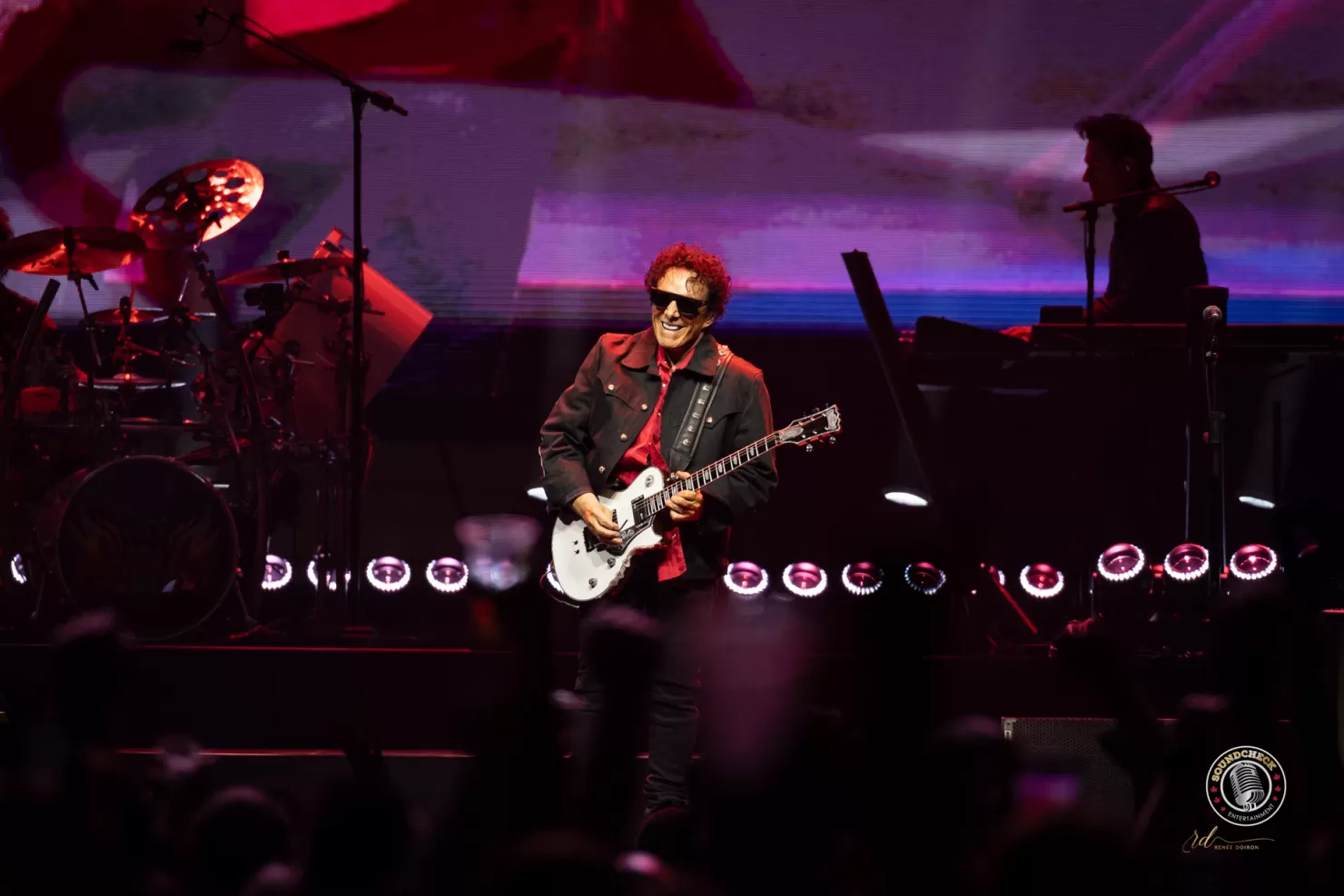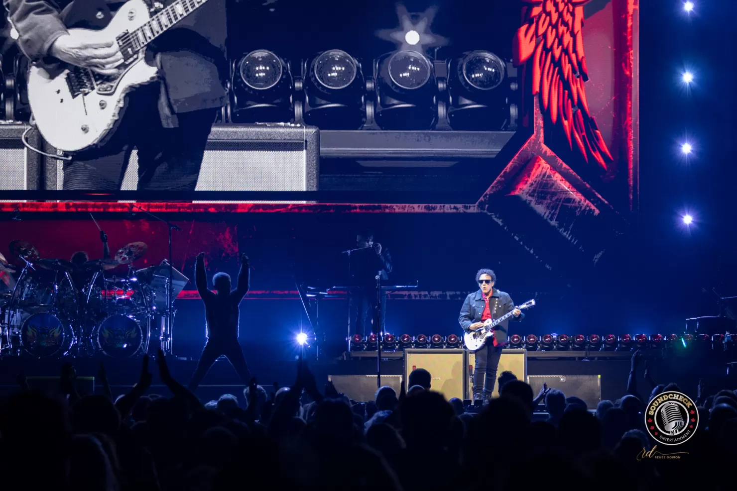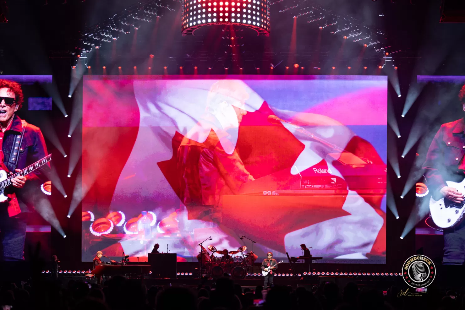 Journey wasted no time, launching straight into “Be Good to Yourself.” Then came a moment that could only happen in Canada’s capital. Guitarist Neal Schon stepped forward and began playing “O Canada” on his guitar — a soaring, emotional lead that immediately brought the arena to its feet. Beside him, Jonathan Cain joined in on piano, giving the anthem a rich, full arrangement as a massive Canadian flag waved across the screen behind them. It wasn’t the crowd leading the band; it was the band honouring the crowd, and Ottawa answered with one of the loudest, proudest singalongs of the night.