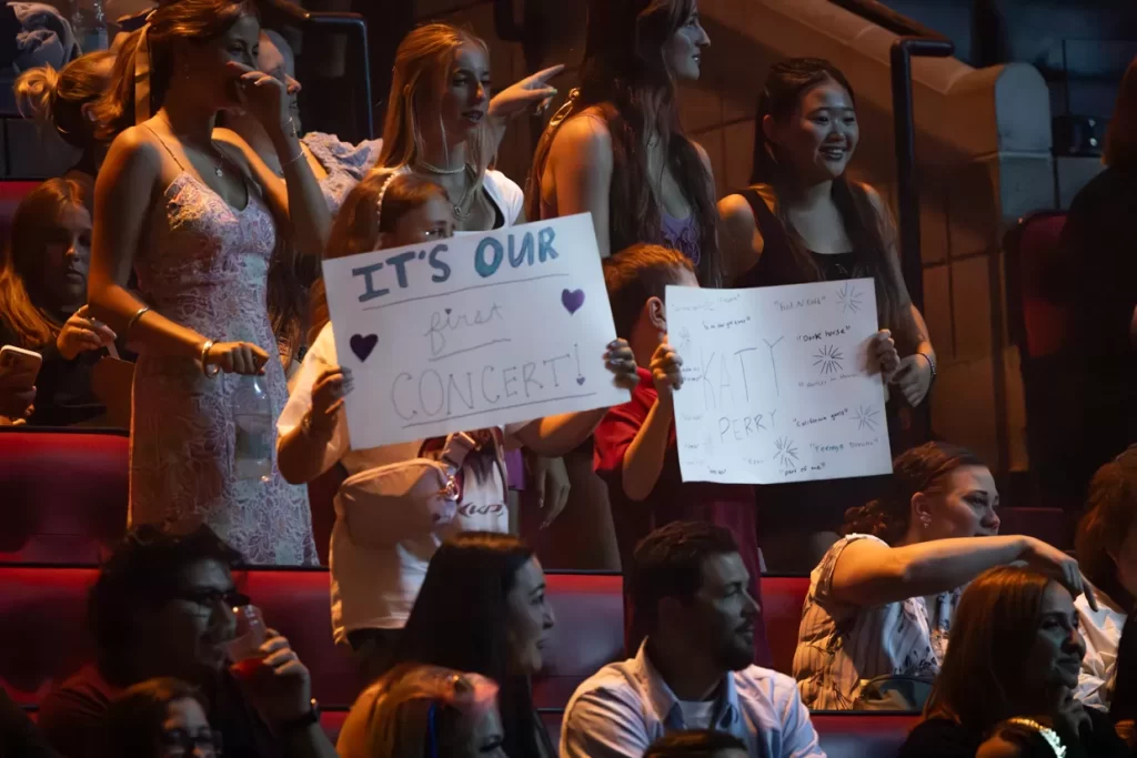 One of the night’s most striking features? The crowd itself. Despite Perry’s nearly two-decade-long career, the audience skewed surprisingly young. Tweens and teens arrived, sometimes with their moms, in full glittery regalia—face gems, LED headbands, and home-sewn candy-colored costumes were everywhere, proving that Perry continues to inspire new generations of fans. The energy was loud, joyful, and unabashedly sparkly. Fans were also speculating about whether former prime minister Justin Trudeau, Perry’s rumored new beau, might attend the show. Though he was a no-show in Ottawa, media outlets later confirmed he was seen at her Montreal performance the next night, attending with his daughter and singing along.