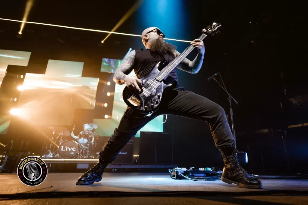 Ed’s voice remains the unmistakable core of LIVE, but the band around him deserves full credit. Zak Loy on lead guitar and Johnny Radelat on drums were rock solid, but the standout for me was bassist Pat Seals (formerly of Flyleaf). If you muted the sound and just watched him, you’d swear you were at a metal show—pure rockstar energy.
