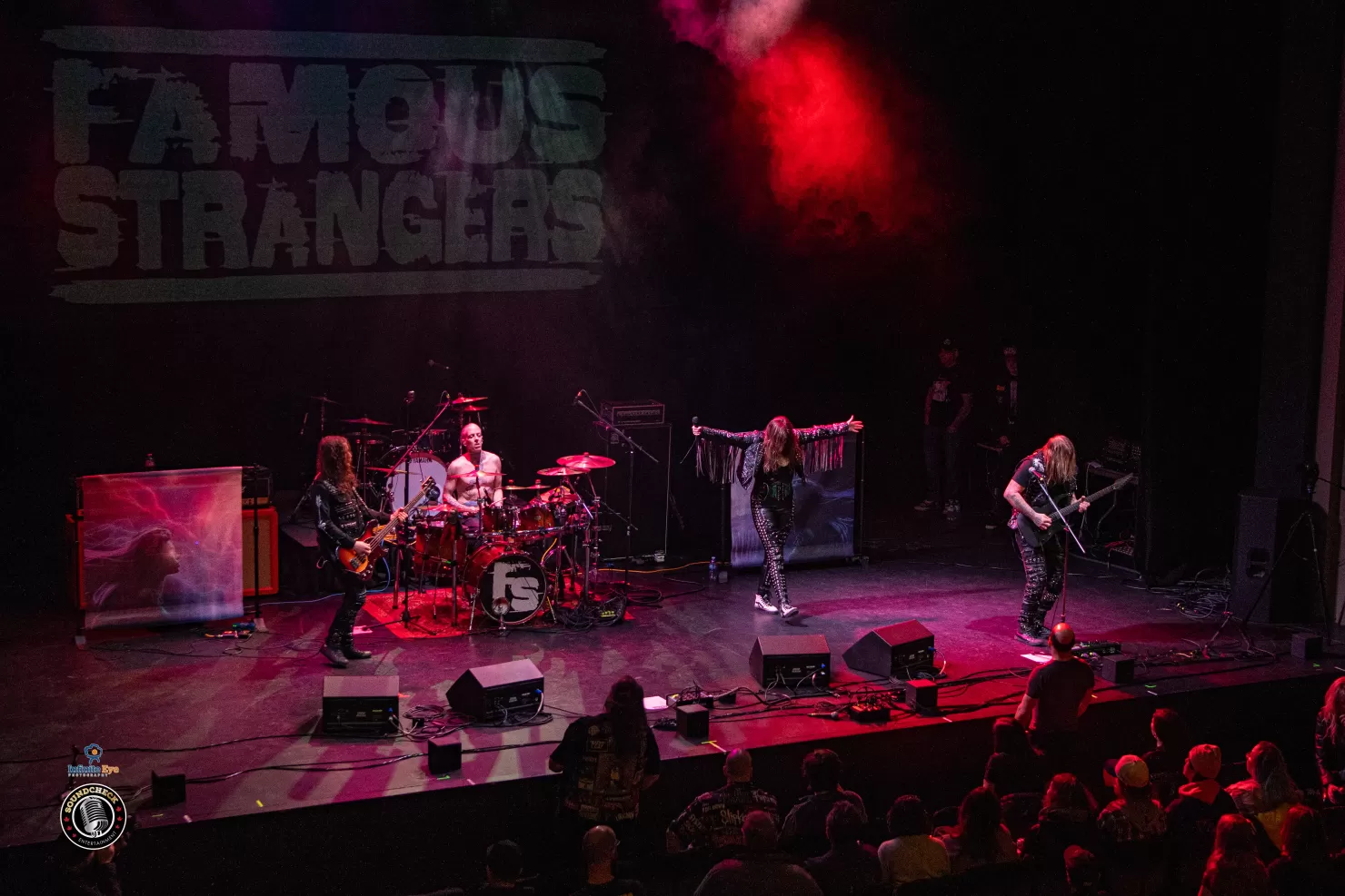 The night opened with the local band Famous Strangers, and they didn’t waste a second earning attention. Their set was short—roughly half a dozen songs—but it felt complete. Heavy, dark, and confident right out of the gate, they sounded like a band that belonged on that stage.