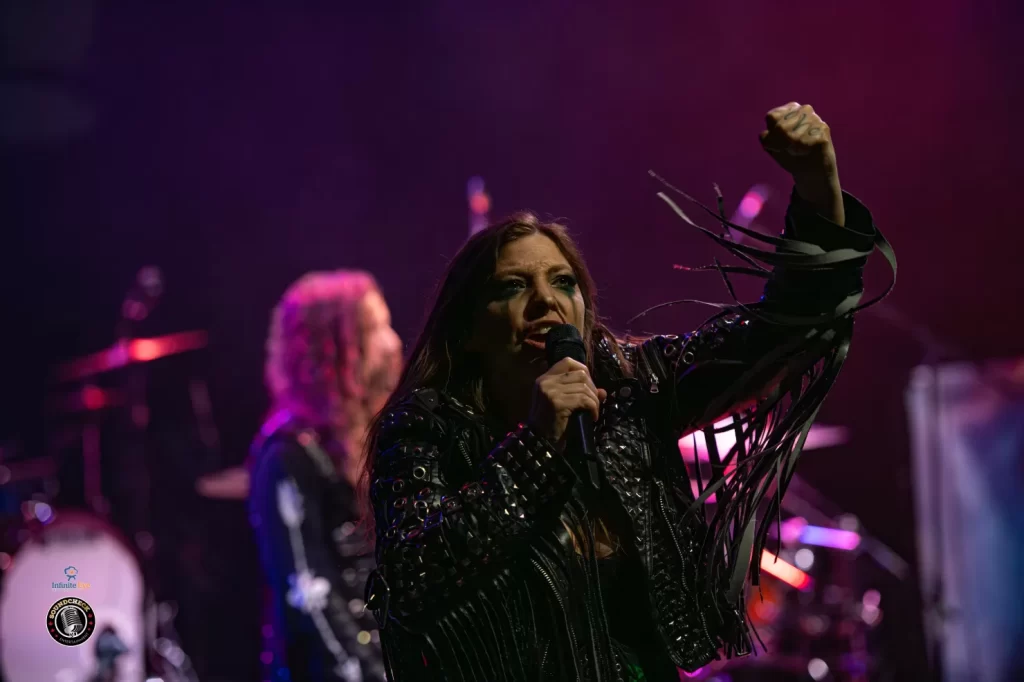 Vocalist Amanda Kiernan immediately commanded the room. Her voice was powerful and controlled, and she worked the stage with intent. At one point, she stepped right to the front edge, singing directly into the face of a new fan, locking them into the moment. Later, she dropped down completely, lying flat on the stage and staring up at the lights while the band played on around her. She stayed there, unhurried. The crowd loved it.