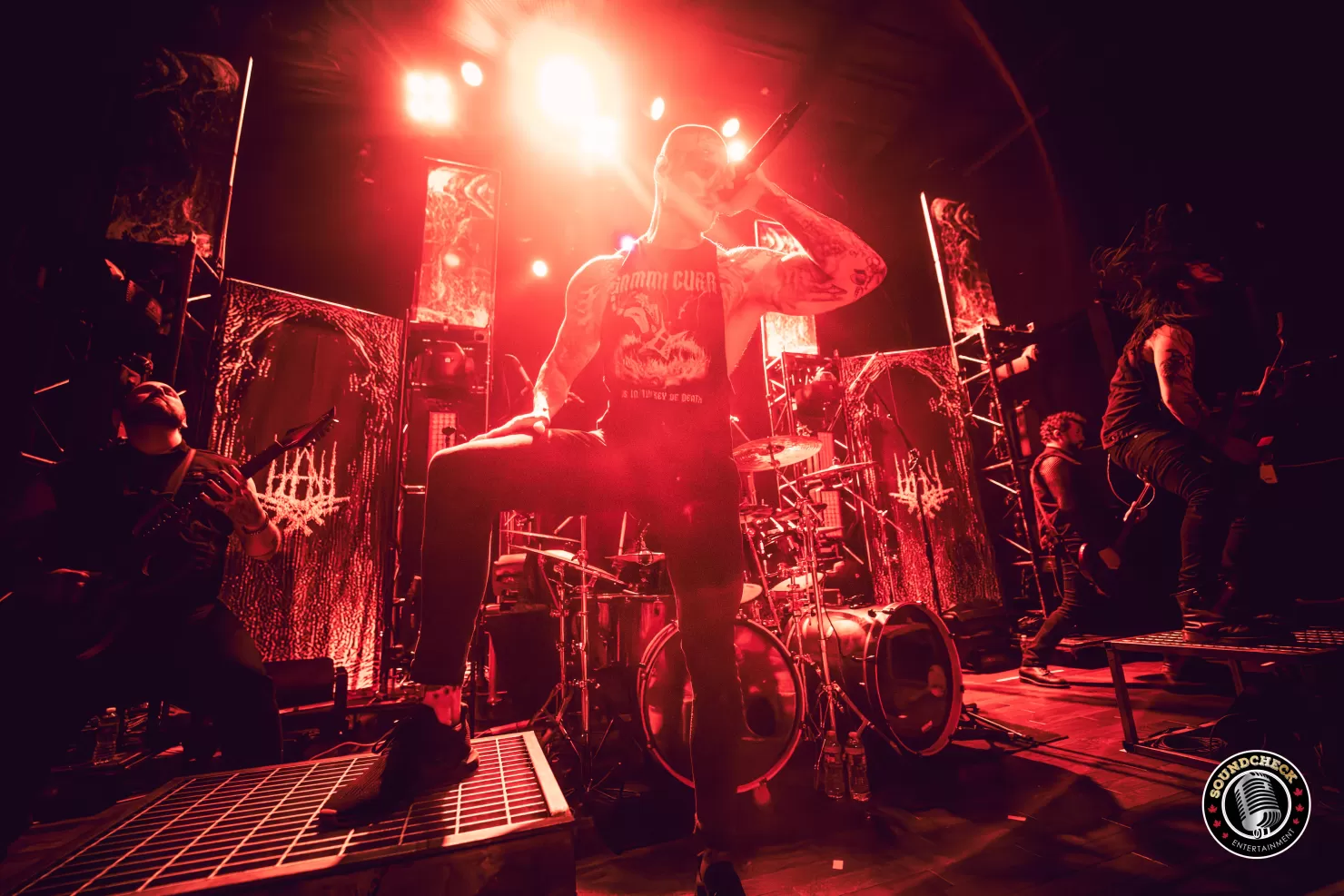 Ov Sulfur was next, a deathcore band from Las Vegas, Nevada, formed in 2020. The current members are vocalist Ricky Hoover, guitarist and vocalist Chase Wilson, guitarist Christian Becker, bassist Josh Bearden, and drummer Ryan “Leviathvn” Rivard. They’ve put out two studio albums, with their latest, *Endless*, released on January 16, 2026, through Century Media Records, along with one EP. The band often explores anti-religious themes in their lyrics. I was blown away by the band’s performance. The heavy guitar and bass, along with the pounding drums, created an amazing atmosphere. Their vocalist, Ricky Hoover, reminded me of Alex Terrible. His growls were impressive, sounding like two different voices—one echoing Alex and the other reminiscent of Mitch Harris from the old lineup of Napalm Death. It was a fantastic show, and I felt privileged to see them live for the first time.