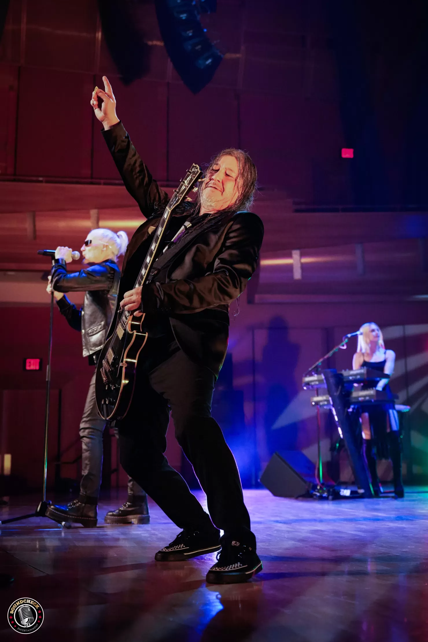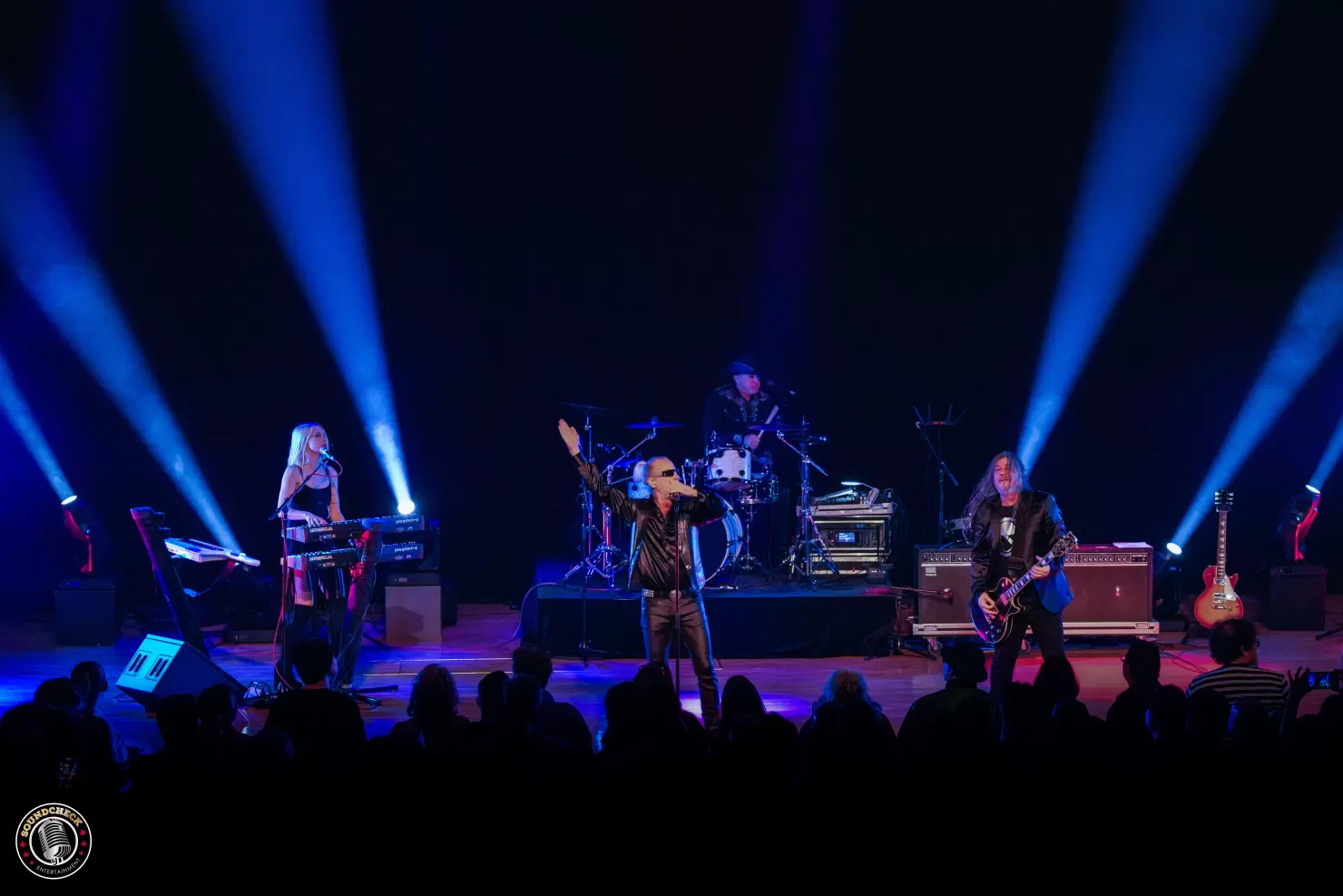 Bella Concert Hall at Mount Royal University was an ideal fit for Men Without Hats’ polished yet playful new‑wave sound, pairing crisp acoustics with a theatre layout that still encouraged people to leave their seats and dance in the aisles. The current lineup — Ivan Doroschuk on vocals, Sahara Sloan (Doroschuk) on keyboards and vocals, Sho Murray on guitar, and Adrian White on drums — played like a seasoned unit that has spent the last few years sharpening its live show across Canada, the U.S., and Europe