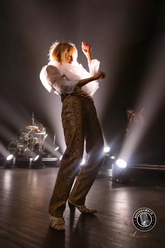 Whether she’s weaving tales of heartbreak or swaggering through anthems about reinvention, her songs come alive like scenes from a film. One moment haunting and tender, the next bold, kinetic, and irresistibly catchy, she drew the crowd in with her stage presence including some wild moves you would expect to see in a Kill Bill movie.
